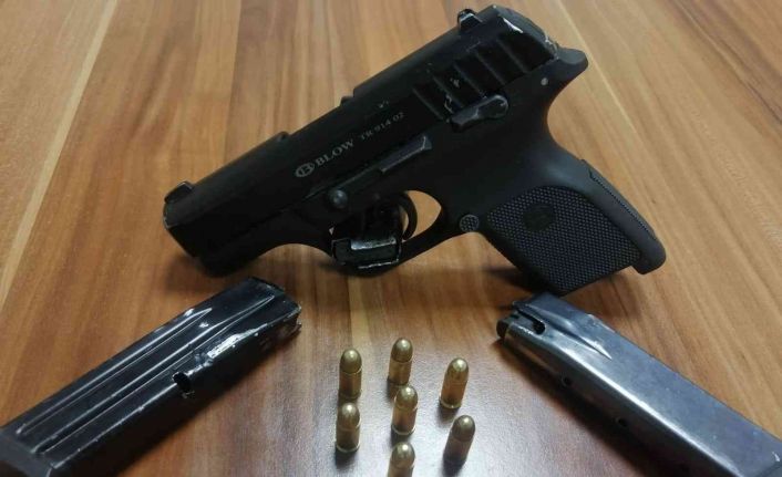 Öte yandan, evde yapılan aramalarda 1 adet tabanca, 3 adet şarjör ve tabanca üzerinde takılı olan şarjör içerisinde 7 adet dolu mermi ele geçirildi.