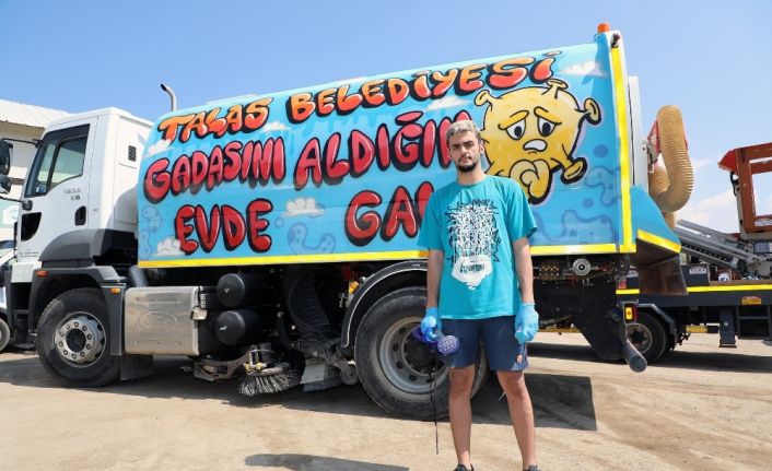 Talas Belediyesi, koronavirüsle mücadele çalışmalarına farklı bir boyut kazandırdı. Belediyenin dört aracına yapılan grafiti çalışmasıyla ilçe halkına Kayseri şivesiyle “Gadasını aldığım evde gal” çağrısı yapıldı.