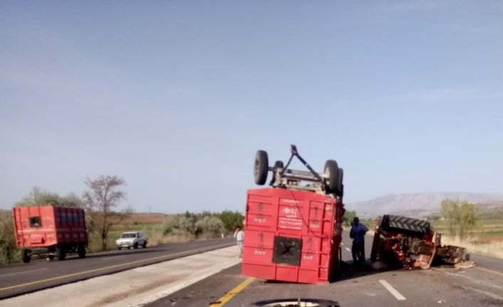 Edinilen bilgiye göre, Sivas-Malatya karayolu üzeri ilçeye bağlı Pazarören mevkinde 58 AV 871 plakalı traktör ile kamyon çarpıştı. Çarpışmanın etkisiyle traktör devrilirken, olay yerine jandarma ve sağlık ekibi sevk edildi. Jandarma yol üzerinde güvenlik önlemi aldı, sağlık ekipleri de traktörde bulunan A.Y. (59), H.G. (20) ve H.A.’yı (40) çıkartarak ambulanslarla hastaneye kaldırdı. Yaralıların tedavilerinin sürdüğü öğrenilirken, araçlar incelemelerin ardından bulundukları yerden kaldırıldı.