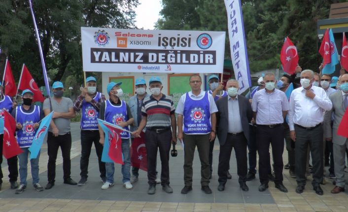 Türk Metal Sendikası, İstanbul merkezli Salcomp Xiaomi firmasında çalışan sendika üyelerinin işten çıkarılması ile ilgili tüm illerde eş zamanlı ortak basın açıklaması düzenledi. Türk Metal Sendikası Kayseri Şube Başkanı Ali Gökkaya da yaptığı basın açıklamasında, “Türk Metal Bayrağı Salcomp Xiaomi firmasına dikilene kadar mücadelemiz devam edecek” dedi.