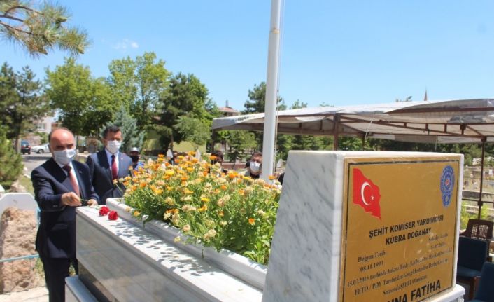 Şehit Komiser Yardımcısı Kübra Doğanay’ın da kabrini ziyaret eden Vali Günaydın ve eşi Aysel Günaydın şehidin mezarında dua edip karanfil bıraktılar.