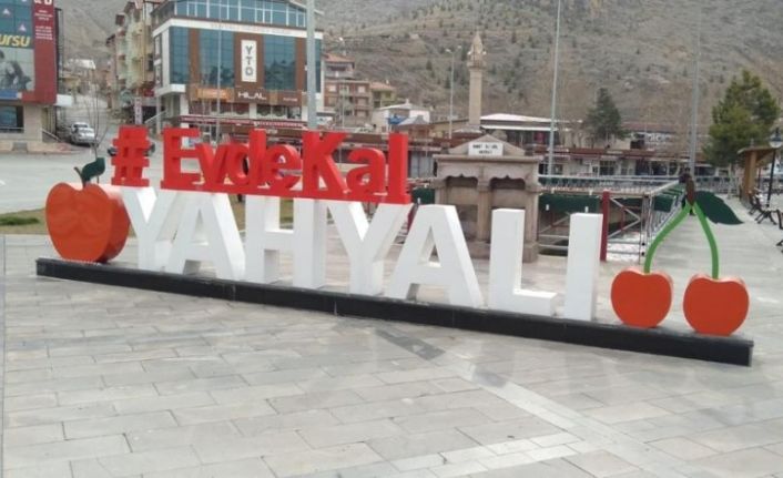 Yahyalı ilçe meydanında bulunan ilçe isminin yazılı olduğu maket üzerine “evde kal” yazısı eklendi.
