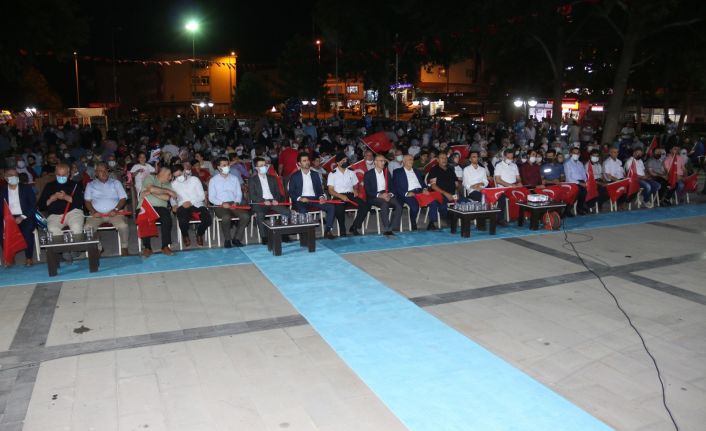Başkan Öztürk; “Bu gün bu meydandan bir kez daha hainlere sesleniyoruz. Başaramayacaksınız, Milletimizi bölemeyeceksiniz, Bayrağımızı indiremeyeceksiniz, Vatanımızı parçalayamayacaksınız, Devletimizi yıkamayacaksınız, Ezanlarımızı susturamayacaksınız, Bu ülkeye diz çöktüremeyeceksiniz, Bu halka boyunduruk vuramayacaksınız. Bu vatan ve Türk milleti çok ihanet ve çok hainler gördü ama 15 Temmuz gibisini asla görmedi. Bu gece iman ve vatan uğurunda can veren yiğitlerimizi anmak için buradayız. 15 Temmuz 2016 tarihinde, karanlık güçlerin oyuncağı olmuş hainlerin ihanet planlarını, çöpe atan kahramanlarımızı rahmetle anmak için buradayız. Bu milletin, bu ümmetin, bu vatanın, böyle serden geçtilere ihtiyacı var. Hepimiz bu dünyada, mutlu, huzurlu bir hayat yaşamayı, öldükten sonra da rahmetle anılmayı isteriz. O zaman yapacağımız şey; Çocuklarımızı sokakların insafına terk etmemek, onları iyi insanlar olarak topluma kazandırmaktır. Onları; Allah’ını bilen, Peygamberini tanıyan, Vatanını seven, Kul hakkına riayet eden, Dürüst, adaletli, merhametli, yardımsever, güzel ahlaklı, Kısacası, Müslümanca hayat yaşayan insanlar olarak yetiştirmek zorundayız. O zaman, Allah’ın yardımı hep bizimle olacak ve zalimler hiçbir şekilde bizim birliğimizi, dirliğimizi bozamayacaktır. Bu vesileyle 15 Temmuz şehitlerimizi ve yüzyıllar boyunca imanı uğurunda can veren bütün şehitlerimizi rahmetle anıyorum” diye konuştu.