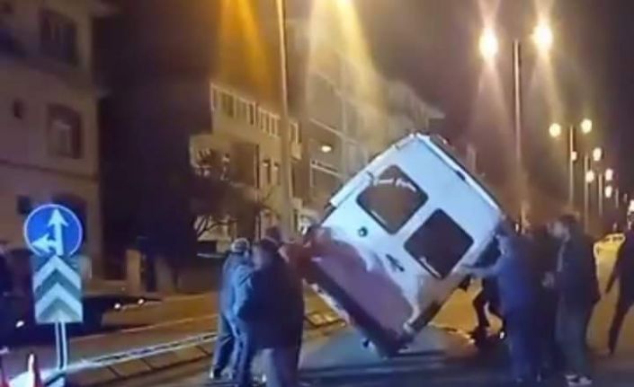 Edinilen bilgiye göre, ilçeye bağlı Tekir Caddesi’nde direksiyon hakimiyetini kaybeden minibüs, aydınlatma direğine çarparak yan yattı. Kaza yerine gelen vatandaşlar, el birliği ile yan yatan aracı kaldırdı. Kazada yaralanan olmazken, minibüste maddi hasar meydana geldi.