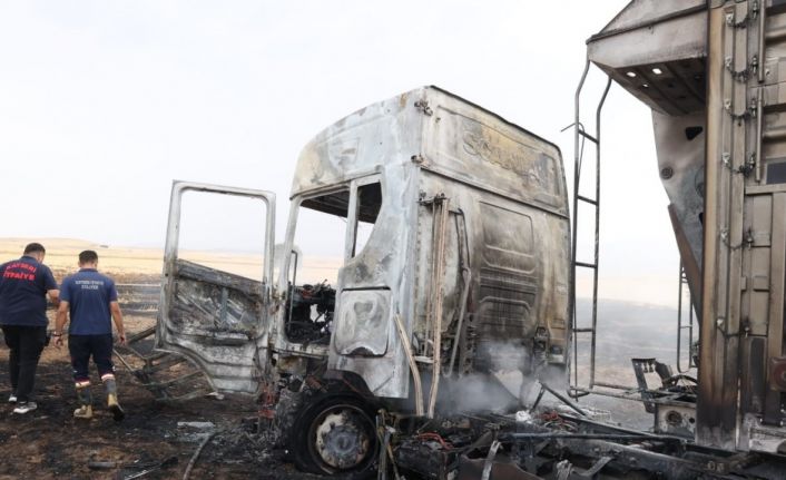 Kayseri’nin Bünyan ilçesinde çıkan yangında bir tır tamamen yanarak kullanılamaz hale geldi.