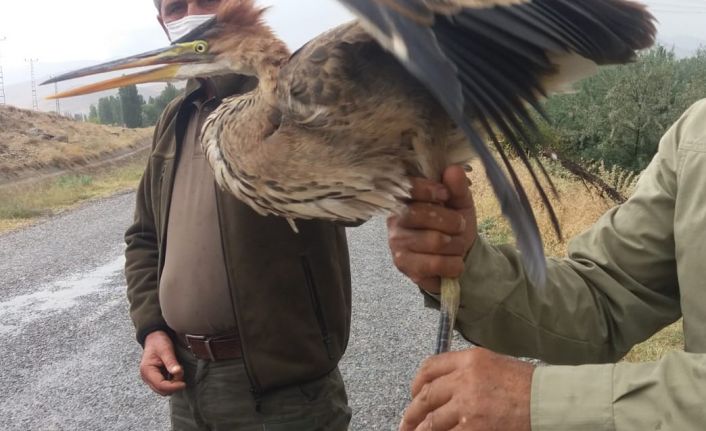 Kayseri’nin Yahyalı ilçesinde duyarlı bir vatandaş tarafından bulunan yaralı erguvani balıkçıl kuşu tedavi altına alındı.