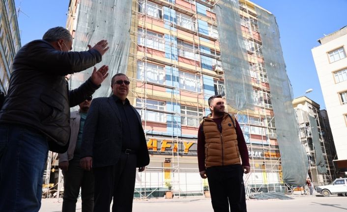 Kilis Belediyesi tarafından Cumhuriyet Caddesinin dış cephe giydirme ve kaplama çalışmaları sürüyor.