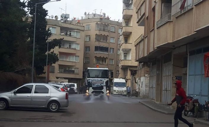 Kilis Belediyesi Temizlik İşleri Müdürlüğü tarafından kent merkezinde 24 saat dezenfekte çalışmalarını aralıksız sürdürüyor.