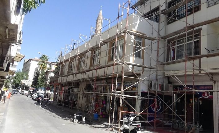 Kilis’te Dolap Pazari Caddesi’nde dış cephe giydirme çalışmaları sürüyor.