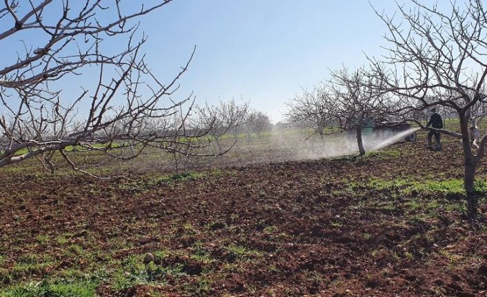 Kilis’te. Fıstık ağaçları kabuklu bit, dal güvesi, karagöz kurduna karşı ilaçlanmaya başladı.