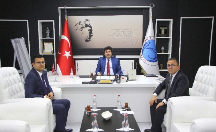 Kilis’in Öncüpınar Gümrük Müdürü i Keskin ile Çobanbey Gümrük Müdürü Yıldırım, Üniversite Rektörü Prof. Dr. Mustafa Doğan Karacoşkun’u ile bir araya geldiler.