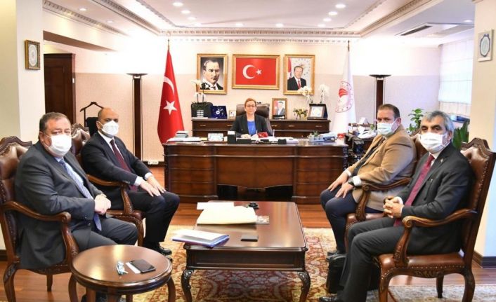 AK Parti İl Başkanı Mehmet Murat Karataş, Kilis Milletvekili Ahmet Salih Dal, Kilis Belediye Başkanı Servet Ramazan ve Kilis Belediyesi Plan Proje Müdürü Murat Bilecen ile beraber Tarım ve Orman Bakan Yardımcılığına atanan Ayşe Ayşin Işıkgece’ye hayırlı olsun ziyaretinde bulunarak, Kilis keçisinin desteklenmesi hususunda projelerin geliştirilmesi, Kilis IPARD programına dahil edilmesi, Kilis Hayvan Hastalıkları Polikliniği yapılması, Vatandaşın yaşadığı Arazi Toplulaştırma ilgili sorunların giderilmesi, Kilis tarımsal hibe ve desteklemelerin artırılması, Tarım ve Orman Müdürlüğü Personelinin sorunlarının çözülmesi, Kilis tarımsal sulama alanlarının çoğaltılması, Üzüm ve zeytin üreticilerine sağlanan desteklerin artırılması ile ilgili talepleri elettiler. AK Parti İl Başkanı Karataş ile Belediye Başkanı Ramazan, Toki Proje Daire Başkanı Serhat Günkan ile bir araya gelerek, yapımı başlanan Tahtalı TOKİ, Mayıs ayı içerisinde ihalesi yapılacak olan Deveciler TOKİ ve projelendirme çalışmalarında sona yaklaşılan Millet Bahçesi Projesi hakkında görüş alış verişinde bulunarak, projelerin en kısa sürede tamamlanması konuları ele alandı.