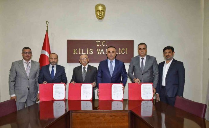 Kilis kent merkezinde inşa edilecek olan 4-6 Yaş Kuran Kursu ve Cami protokolü Vali Recep Soytürk, Kilis İl Özel İdaresi Genel Sekreteri Murat Küçükoğlu, İl Müftü Vekili Cengiz Çolak ve hayırsever iş insanı emekli öğretmen Mahmut Kudeyt arasında imzalandı.