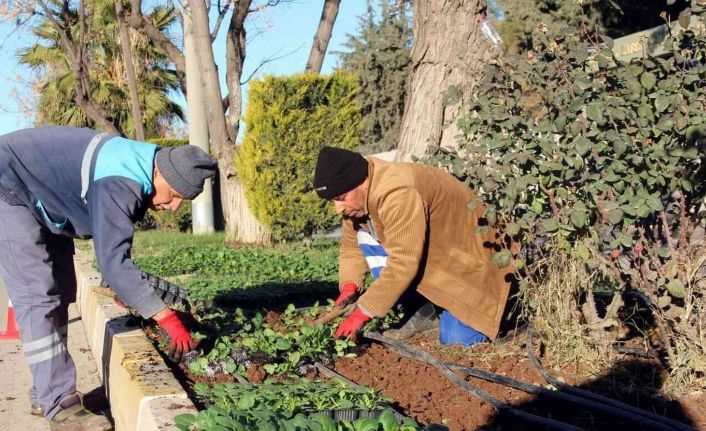 Kilis Belediyesi Park ve Bahçe Müdürlüğü tarafından kent merkezindeki refüjler ile parklara kış bitkileri dikilmeye başlandı.