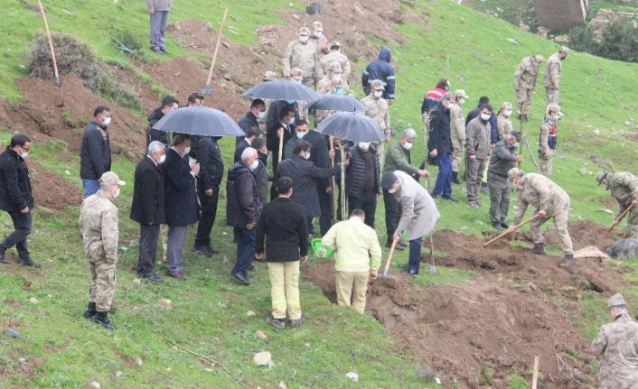 Kilis’te, Orman İşletme Müdürlüğü tarafından Dünya Ormancılık Günü nedeniyle Suriye sınırında düzenlenen fidan dikimi yağmur altında yapıldı.