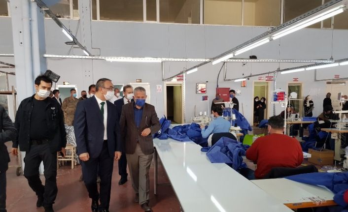 Vali Soytürk beraberinde OSB Yönetim Kurulu Başkanı Mahir Can, İl Emniyet Müdürü Mahmut Karabulut, İl Jandarma Komutanı Jandarma Kıdemli Albay Hakan Başaklıgil ile birlikte Organize Sanayi Bölgesinde faaliyet gösteren üretim tesislerini gezerek, çalışma ortamlarındaki sosyal izolasyonla ilgili inceleme ve denetlemelerde bulundu.