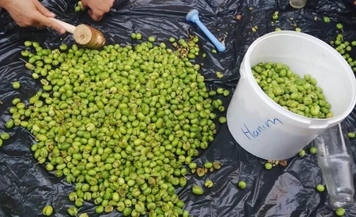 Kilis’te, zeytin bahçelerinden toplanan yeşil zeytinler tatlandırılarak, sabah kahvaltılarda tüketiliyor.