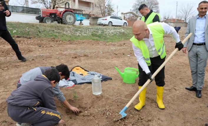 Başkan Önal öğrencilerle fidan dikti