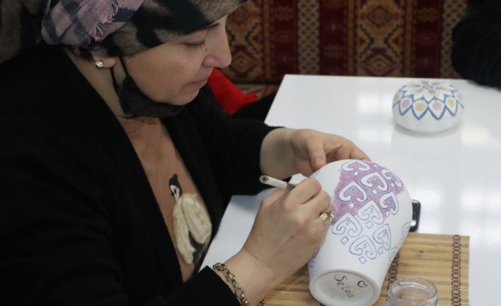 Kırıkkale Belediyesi tarafından mahalle konaklarında açılan çini kursu sayesinde üretilen ürünler, kadınların en ekonomisine katkı sağlıyor.
