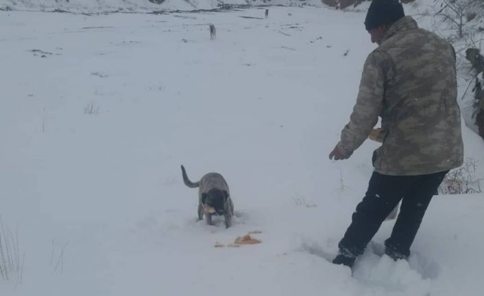 Kırıkkale’nin Delice Belediyesi ekipleri, ilçedeki kar yağışı ve soğuk havalardan etkilenen sokak hayvanları için besleme çalışmaları yaptı.