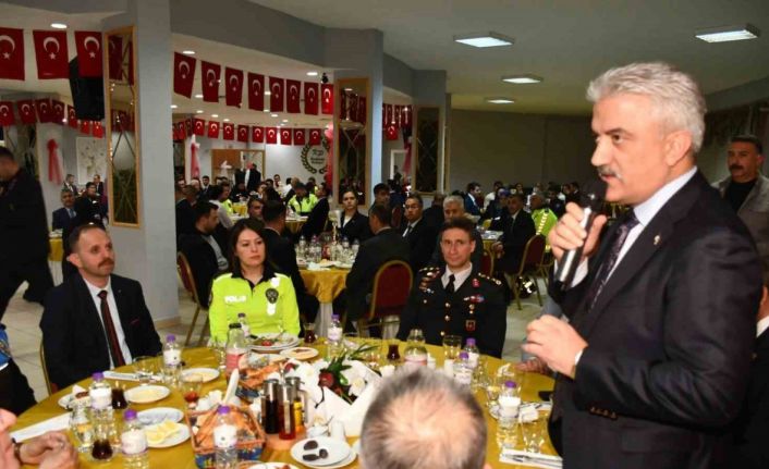 Kırıkkale Valisi Mehmet Makas, İl Emniyet Müdürlüğü’nde görev yapan polis memurlarıyla düzenlenen iftar programında bir araya geldi. Ramazan ayının manevi atmosferinde gerçekleşen programda konuşan Vali Makas, vatandaşların huzuru ve güvenliği için fedakarca görev yapan tüm emniyet personeline teşekkür etti. Vali Makas, "Mübarek Ramazan ayının cehennem azabından kurtuluş günleri olan son günlerinde sizlerle birlikte iftar yapmaktan büyük bir mutluluk duyuyoruz. Memleketimizde bayrak inmiyor, ezan susmuyorsa, bunun baş kahramanları emniyet teşkilatımız, jandarma teşkilatımız ve askerimizdir. Huzurumuzun ve rahatlığımızın sebebi, her birinizin görevini en iyi şekilde yapmasından kaynaklanmaktadır. Bugün olduğu gibi, bundan sonra da üstlendiğiniz bu zorlu görevi başarıyla sürdüreceğinize olan inancımız tamdır" ifadelerini kullandı.