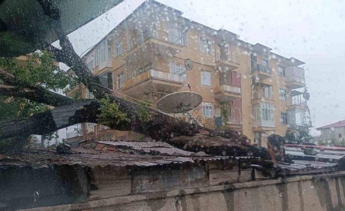 Kırıkkale’de etkili olan rüzgar nedeniyle devrilen ağaç, bir evin tandırlık bölümünün çatısına düşerek maddi hasara yol açtı.