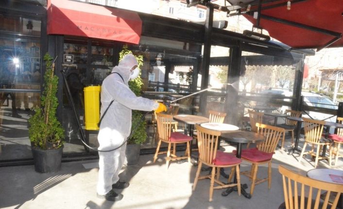 Kırıkkale Belediyesi tarafından dün itibarıyla yeniden müşteri kabul etmeye başlayan kafe, restoran ve kıraathanelerde dezenfekte çalışmaları gerçekleştirildi.