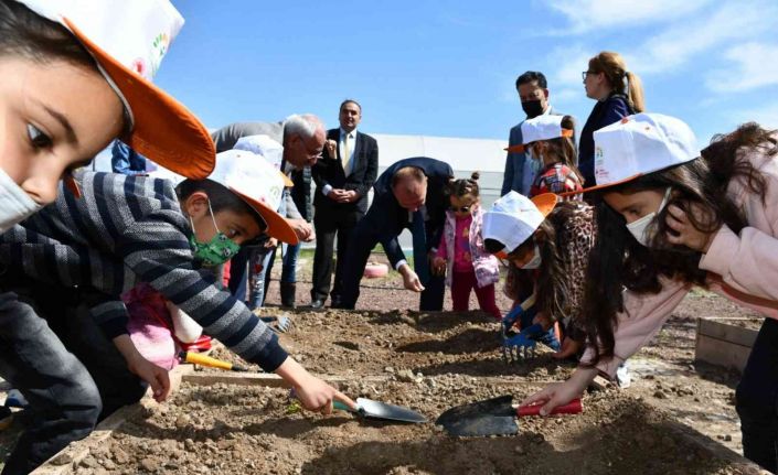 Kırıkkale’de öğrenciler, Obaköy Çocuk Tarım Akademisi’nde sebze ve meyve tohumlarını toprakla buluşturdu.