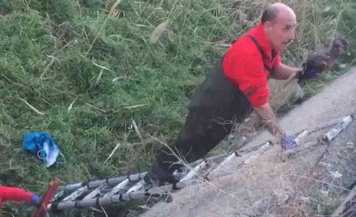Su kanalına düşen yaban ördeğini itfaiye kurtardı