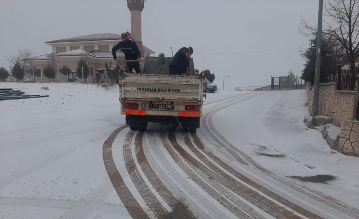 Kırıkkale’nin Yahşihan Belediyesi, ilçede etkisini gösteren kar yağışı ile birlikte tuzlama ve küreme çalışmalarına hız verdi.