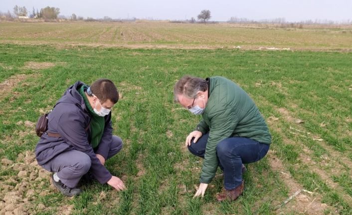 Kırklareli Tarım ve Orman İl Müdürlüğü Bitkisel Üretim ve Bitki Sağlığı Şubesi teknik personel tarafından zararlılar yönünden arazi kontrolleri yapılıyor. Kontrollerde sinek larvalarının zarar verdiği buğday alanları tespit edildi.