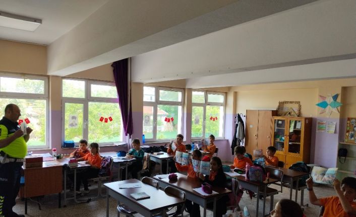 Kırklareli İl Jandarma Komutanlığı ekipleri sorumlu oldukları bölgelerde öğrencilere trafik kuralları hakkında bilgilendirdi.