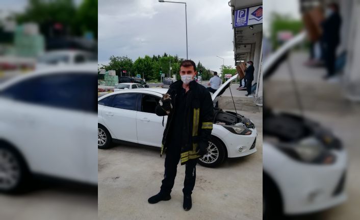 Kırklareli’nde otomobilin motor kısmına sıkışan yavru kedi itfaiye ekiplerince kurtarıldı.