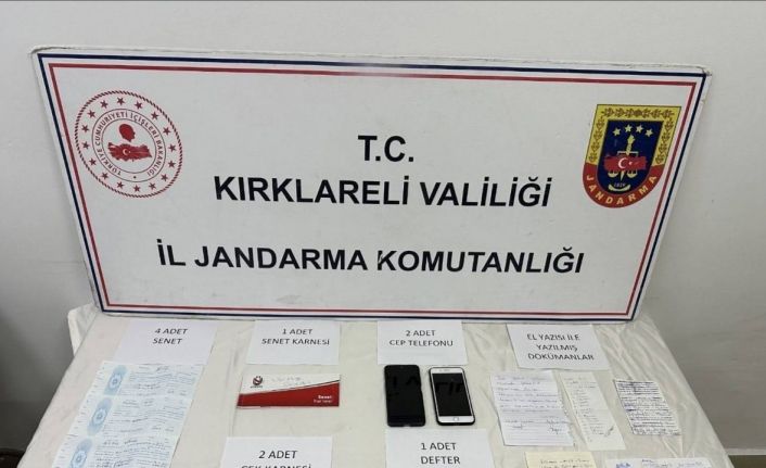 Kırklareli’nde jandarma ekiplerince tefecilik yaptığı iddiasıyla 1 şüpheli yakalandı.