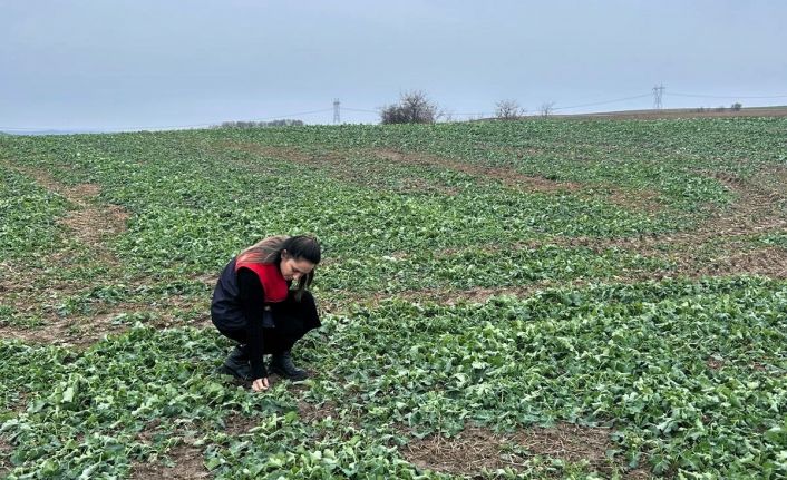 Kırklareli’nin Pehlivanköy ilçesinde çiftçinin anıza kanola ekimi yaptığı arazisinde bitkinin fizyolojik gelişimi, kök gelişimi ve toprak nem durumu yerinde incelendi.