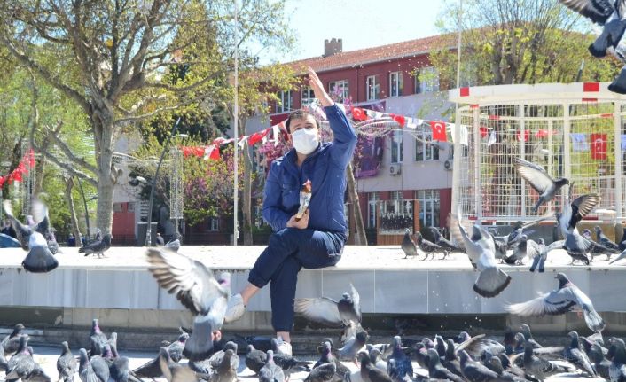 Kırklareli’nin Lüleburgaz ilçesinde Fatih Yıldız (27), Kongre Meydanı’ndaki yüzlerce güvercini salgının çıktığı ilk günden bu yana besliyor. Her gün belli saatlerde meydana gelen Yıldız, güvercinleri yemliyor. Yıldız, “Sokaklarda kedi ve köpekler için mamalar bırakılıyor ama güvercinlere yönelik çok bir şey yapılmıyor. Bu durum beni çok etkiledi” dedi.