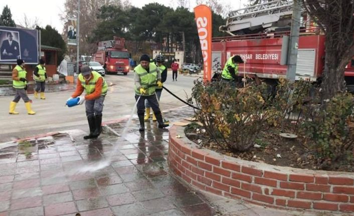 Kırklareli’nin Pınarhisar ilçesinde sokağa çıkma kısıtlamasında boş kalan cadde ve sokaklar, belediye ekipleri tarafından, dezenfektanlı suyla yıkandı.
