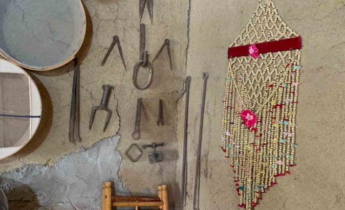KIRŞEHİR (İHA) – Kırşehir’in Çiçekdağı ilçesinde yaşayan Hasan Tekin, dedesi ve babasından miras kalan 100 ila 150 yıllık el yapımı tarım aletlerini, evlerinin bahçesinde bulunan eski bir ekmek tandırında sergiledi.