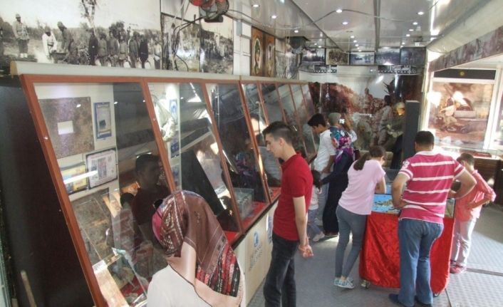 Çanakkale’ye gidemeyerek bölgeyi yakından tanımak isteyenlere gezici müze tırında her türlü olanağın sunulduğunu ifade eden Müze yetkisi Ömer Örnek, gezici müzede; Birinci Dünya Savaşı sırasında 1915-1916 yılları arasında Gelibolu Yarımadası’nda Türk orduları ile itilaf devletleri arasındaki savaşlara katılan askerlere ait eşyalar ve savaş malzemelerinin bulunmakta olduğunu söyledi.