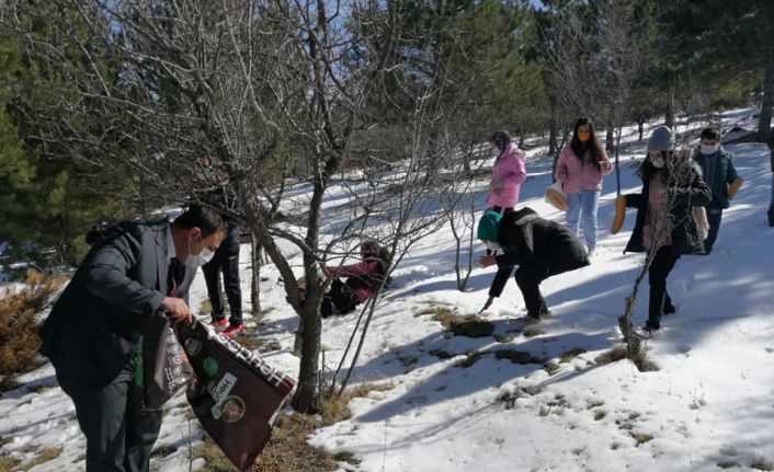Çiçekdağı ilçe belediyesi, ilçe Milli Eğitim Müdürlüğü ve Gençlik Spor Müdürlüğü ortaklaşa programında dağlarda bulunan kuşlar için doğaya yem bıraktı.