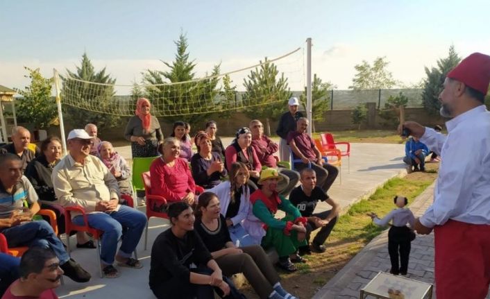 Programda kukla gösterileri ile bakım merkezinde tedavi gören engelliler ve ebeveynleri doyasıya eğlendi.