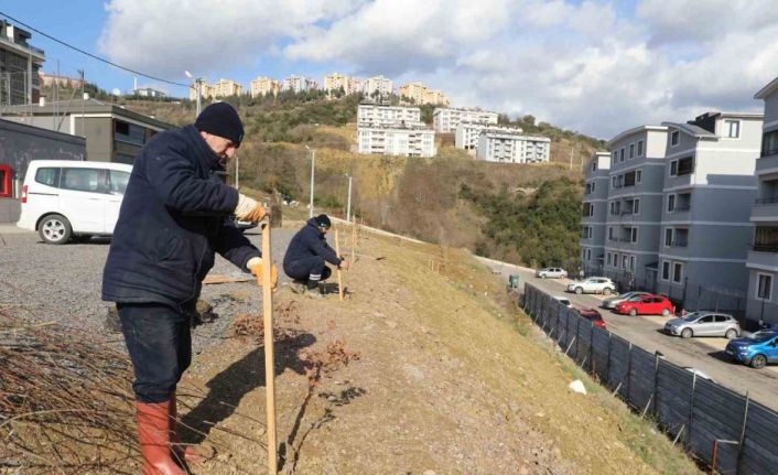 İzmit Belediyesi boş alanları yeşillendirerek 118 fidan dikti.