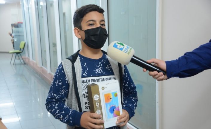 Askıda Tablet ve Bilgisayar kampanyasıyla bir hayırseverin desteğiyle alınan tabletine kavuşan 6. Sınıf öğrencisi Yusuf, “Ben komşumuzun geçici olarak verdiği diz üstü bilgisayar ile derslerime girebiliyordum. Komşumuzun verdiği diz üstü bilgisayarı geri verince derslerime giremedim. Şimdi belediye başkanımız Fatma ablanın verdiği tabletle derslerime girebileceğim. Çok teşekkür ederim” dedi.