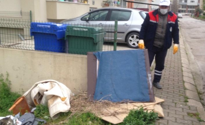 Geri dönüştürülen atıklardan birisi de hacimli atıklar. Ekipler, ‘arayın alalım’ denilmesine rağmen rastgele çevreye bırakılan hacimsel atıkları da tek tek topluyor.