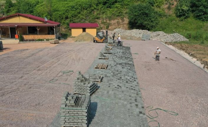 Başiskele Belediyesi, ilçede ulaşım hizmetlerine destek olmak amacıyla toplu ulaşım garajlarını parke taşlarıyla kaplıyor.