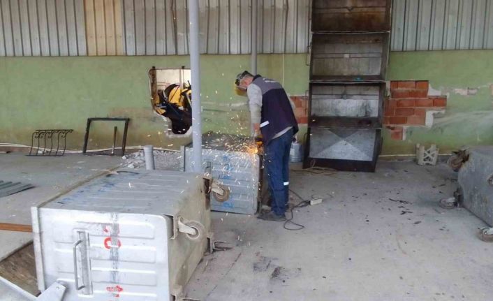 Belediyenin tam teçhizatlı atölyelerinde tamir edilen konteynerler, boyama ve yenileme işlemlerinin ardından yeniden eski yerlerine konuluyor.