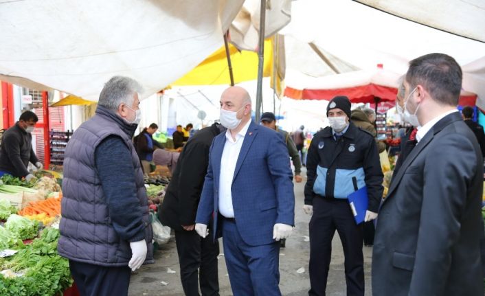 Darıca Belediye Başkanı Muzaffer Bıyık, korona virüs salgınına karşı ilçede kurulan semt pazarlarında alınan önlemleri denetledi.