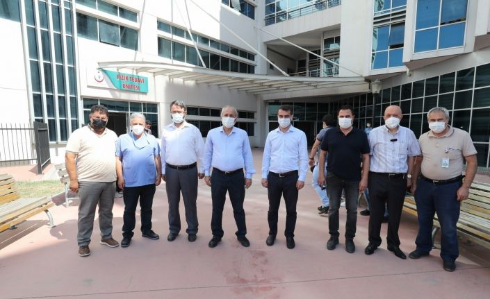 Başkan Büyükgöz’ü hastaneden Fatih Devlet Hastanesi Başhekimi Uzman Dr. İlyas Sarı, doktor ve sağlık çalışanları taburcu ederek uğurladı.