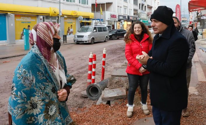 Körfez Belediye Başkanı Şener Söğüt, altyapı çalışmaları tamamlanan Ağadere Caddesi’nde incelemelerde bulundu.