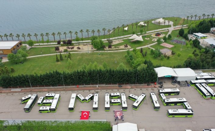 Kocaeli’de belediyeye ait halk otobüslerinin bir araya gelmesiyle oluşturulan koreografi ile 19 Mayıs Atatürk’ü Anma Gençlik ve Spor Bayramı kutlandı.